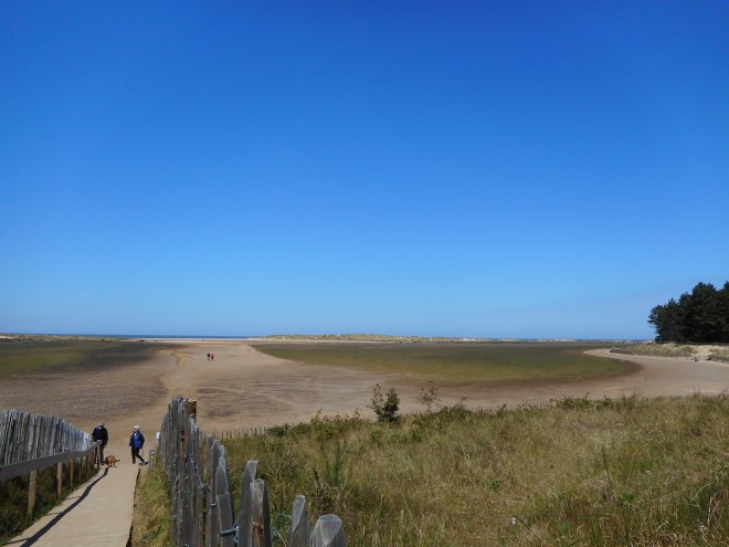 Disappointed I was not. The weather conspired to assist and treated me to a wonderful sunny day, the kind that makes Norfolk skies look their best. Standing in the packed Coasthopper bus – I wasn’t the only person in need of fresh air – I looked out of the window as cliff tops gave way to shingle beaches, then salt marches, as we passed Blakeney. This was as far as I’d ever gotten, on a blustery winter day, and now I was boldly going where I had never gone before.