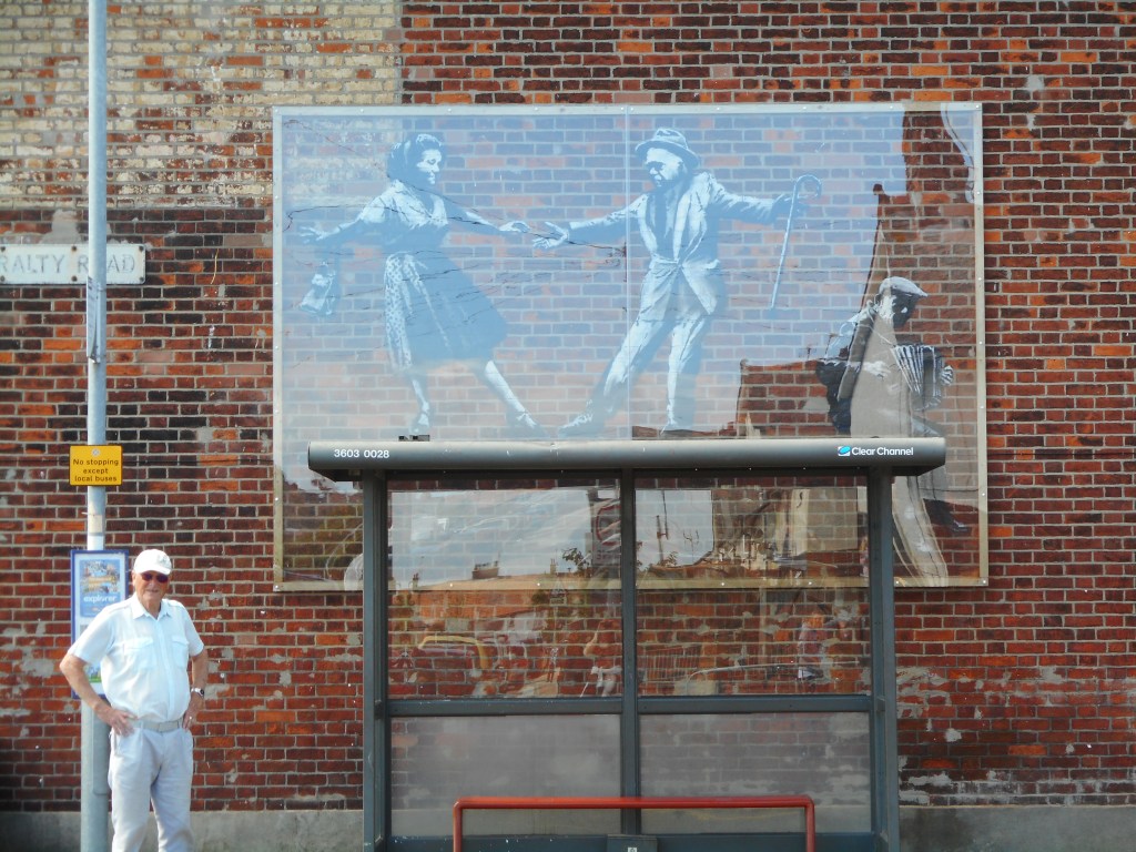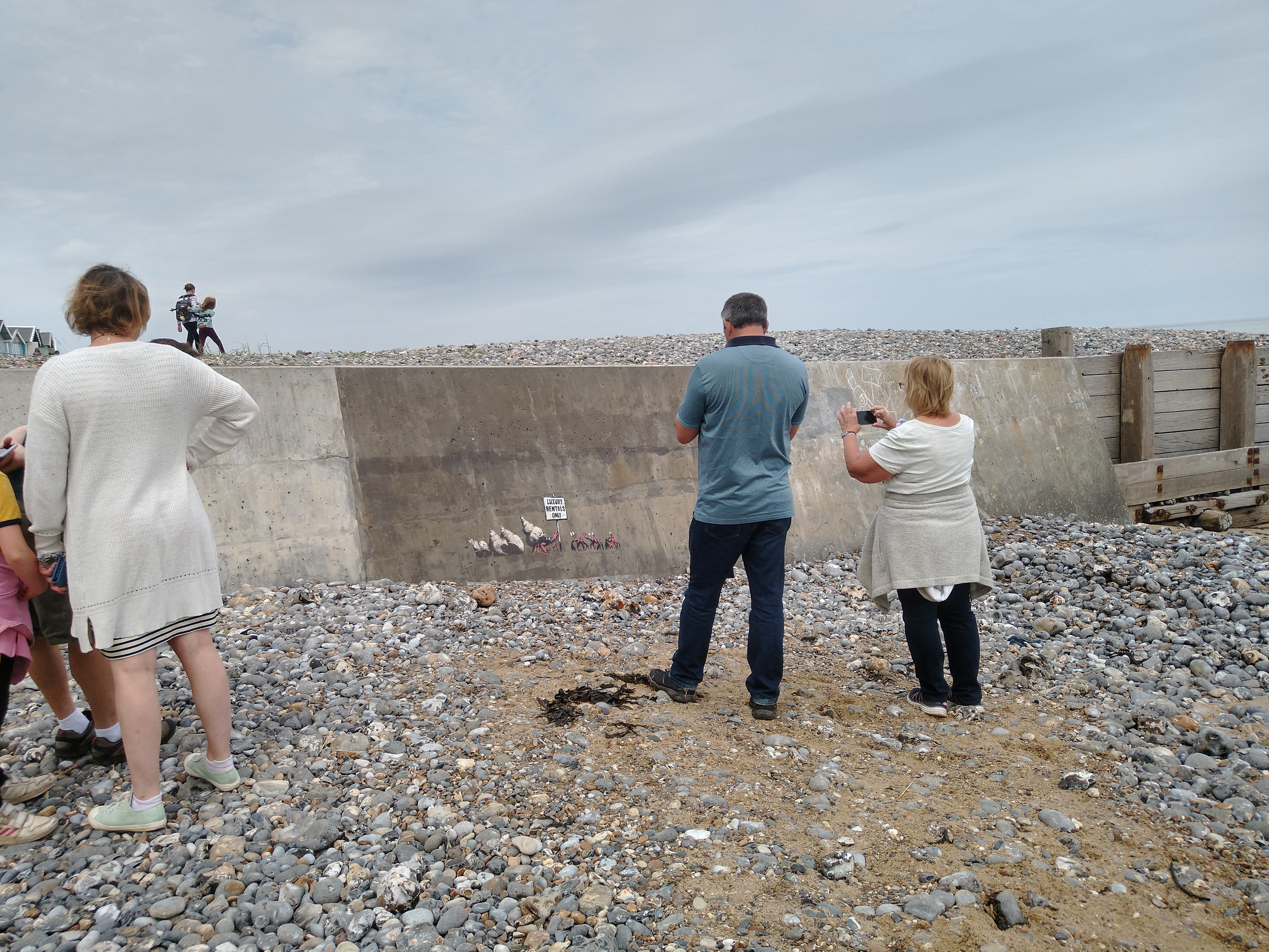 The little boy building a sandcastle was declared “disappointing” by a lady passing by as I look some photographs. I could understand where she was coming from, though it wasn’t Banksy’s fault: the tiles that had been removed to reveal the sand the sandcastle was made from had been replaced and the work now looked unfinished. Still, I found myself in the company of several other art spotters, and it was lovely to encounter some like-minded people.